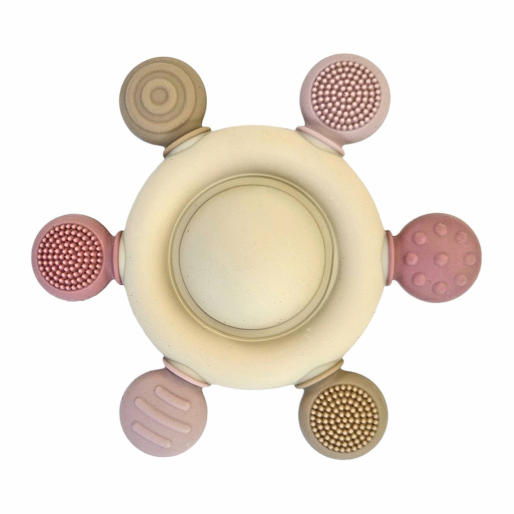 Perfekt für Babys zum Greifen geeignet, ist dieser leichte Beißring einfach zu halten, zu kauen und damit zu spielen.