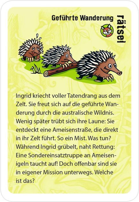 Mit diesen 50 tierisch cleveren Rätselkarten begebt ihr euch auf eine spannende Reise in wilde Wälder und ferne Lebensräume. Tiere, Pflanzen und faszinierende Naturphänomene warten darauf, durch scharfsinniges Kombini eren und Um-die-Ecke-Denken entschlüsselt zu werden.