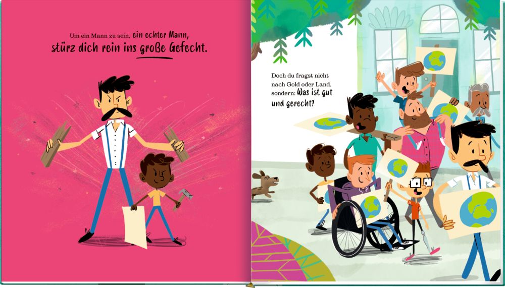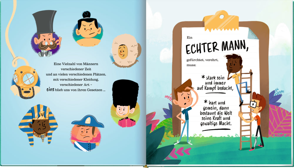 Ein echter Mann, gefürchtet, verehrt, muss stark sein und immer auf Kampf bedacht, hart und gemein, dann bestaunt die Welt seine Kraft und gewaltige Macht ... Was bedeutet es, ein echter Mann zu sein? Und wie können Jungs von heute zu Männern von morgen werden, die ein selbstbestimmtes und glückliches Leben führen? Mit seinen energiegeladenen Reimen ermutigt uns Scott Stuart, ein breiteres, umfassenderes Verständnis von Männlichkeit zu entwickeln. Denn den einen perfekten Mann gibt es nicht – dafür aber jede Menge Jungs wie du und ich, die jeden Tag zeigen, was einen echten Mann wirklich ausmacht. Ein humorvoll erzähltes und illustriertes Bilderbuch nicht nur für Jungs, sondern für die ganze Familie.