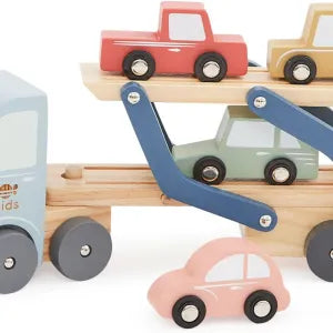 Dieser wunderschön gefertigte Autotransporter aus Holz bietet jede Menge pädagogischen Nutzen und