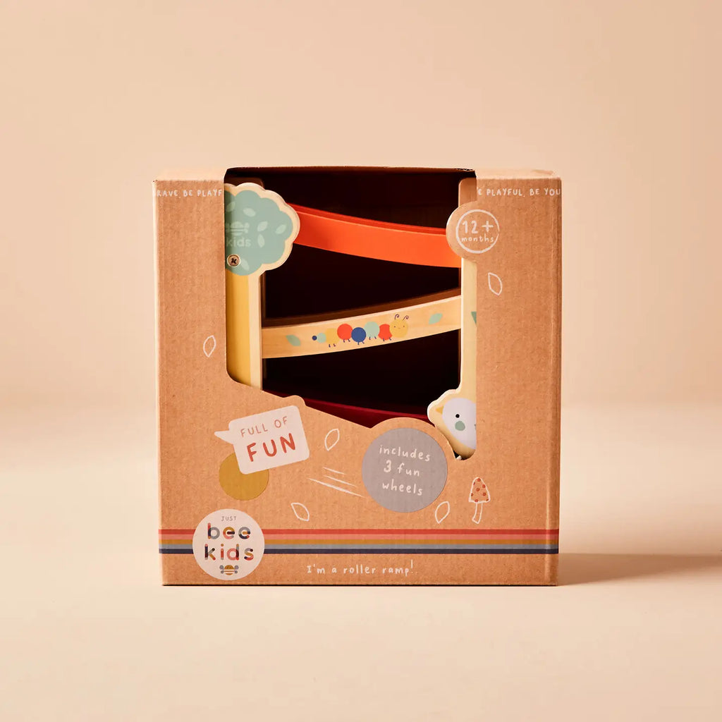 Rollen Sie in endlosen Spaß mit unserer Just Bee Kids FSC® Holz-Garten-Rollrampe! Entworfen, um die Kleinen zu begeistern, wird dieses charmante Spielzeug sicher zum Spielzeit-Favoriten und hält sie beschäftigt und erfreut. Gefertigt aus hochwertigem, nachhaltigem Holz und in lebendigen Farben bemalt, verfügt es über entzückende Fliegenpilze, Vögel und Raupen für einen verspielten Touch. Die vier glatten Rampen ermöglichen es den drei blumenbemalten Rollen, mühelos von oben nach unten zu gleiten und eine faszinierende Bewegung zu erzeugen, die Neugier weckt. Perfekt zur Entwicklung der Hand-Auge-Koordination und zur Förderung interaktiven Spiels ist diese entzückende, garteninspirierte Rampe ein Muss für neugierige junge Entdecker! Alterseignung 12 Monate +