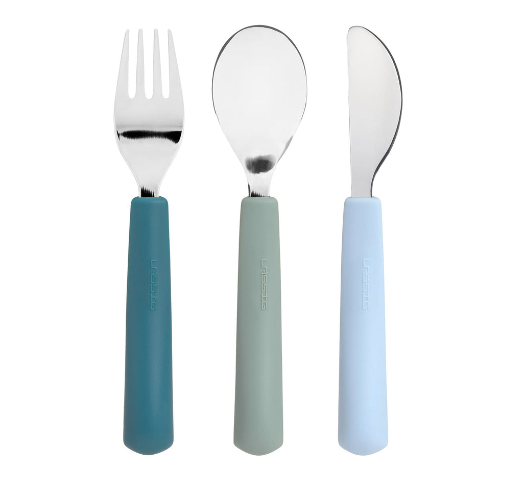 Das praktische LÄSSIG Kinderbesteck mit Silikongriff aus der Tiny Team Kollektion macht mit seinen durchdachten Details und fröhlichen Designs die ersten eigenständigen Essversuche zum Klacks.