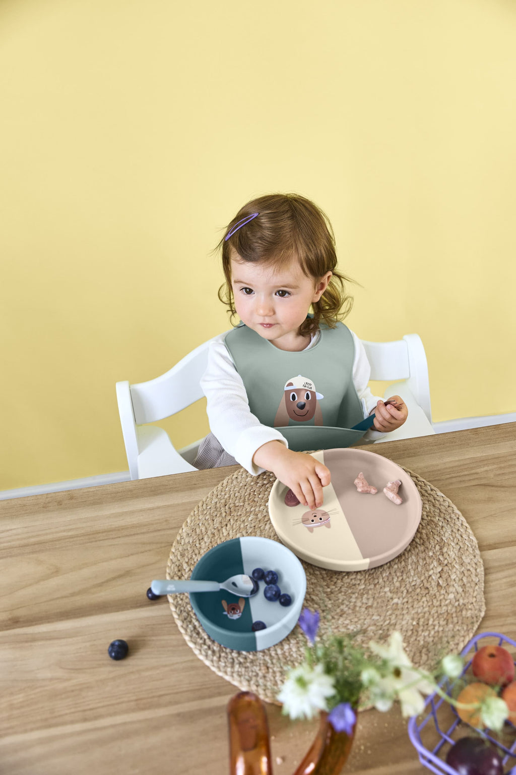 Der praktischen LÄSSIG Silikonteller aus der Tiny Team Kollektion macht mit seinem verspielten Motiv und den tollen Farben die ersten eigenständigen Essversuche zum Klacks.
