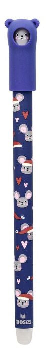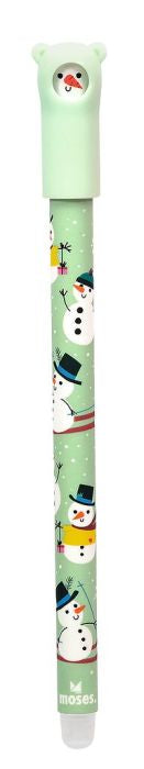Diese fröhlichen Winterfreunde bringen Spaß auf jedes Blatt. Die Gelschreiber schreiben mit blauer, radierbarer Tinte und haben einen Radiergummi direkt in der Spitze – kleine Fehler verschwinden so im Nu.