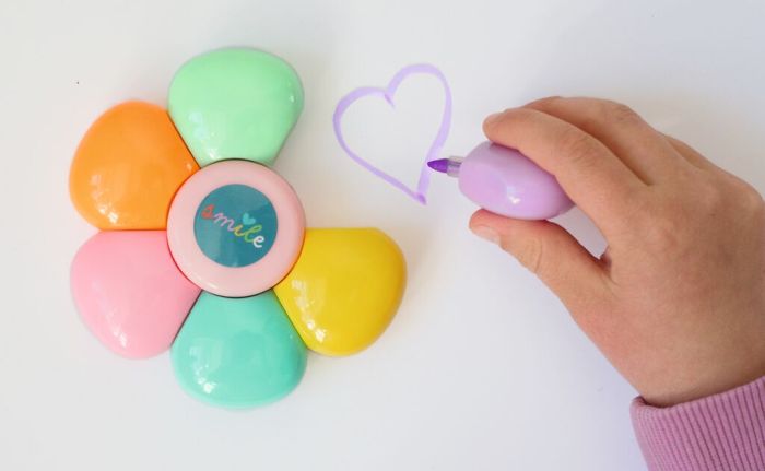 sie enthält fünf einzeln entnehmbare Marker, die sich durch ihre angenehme Haptik und das handliche Format ideal für die Schule oder den Schreibtisch zu Hause. Ob zum Markieren, Malen oder Basteln – hier trifft Funktion auf fröhliches Design.
