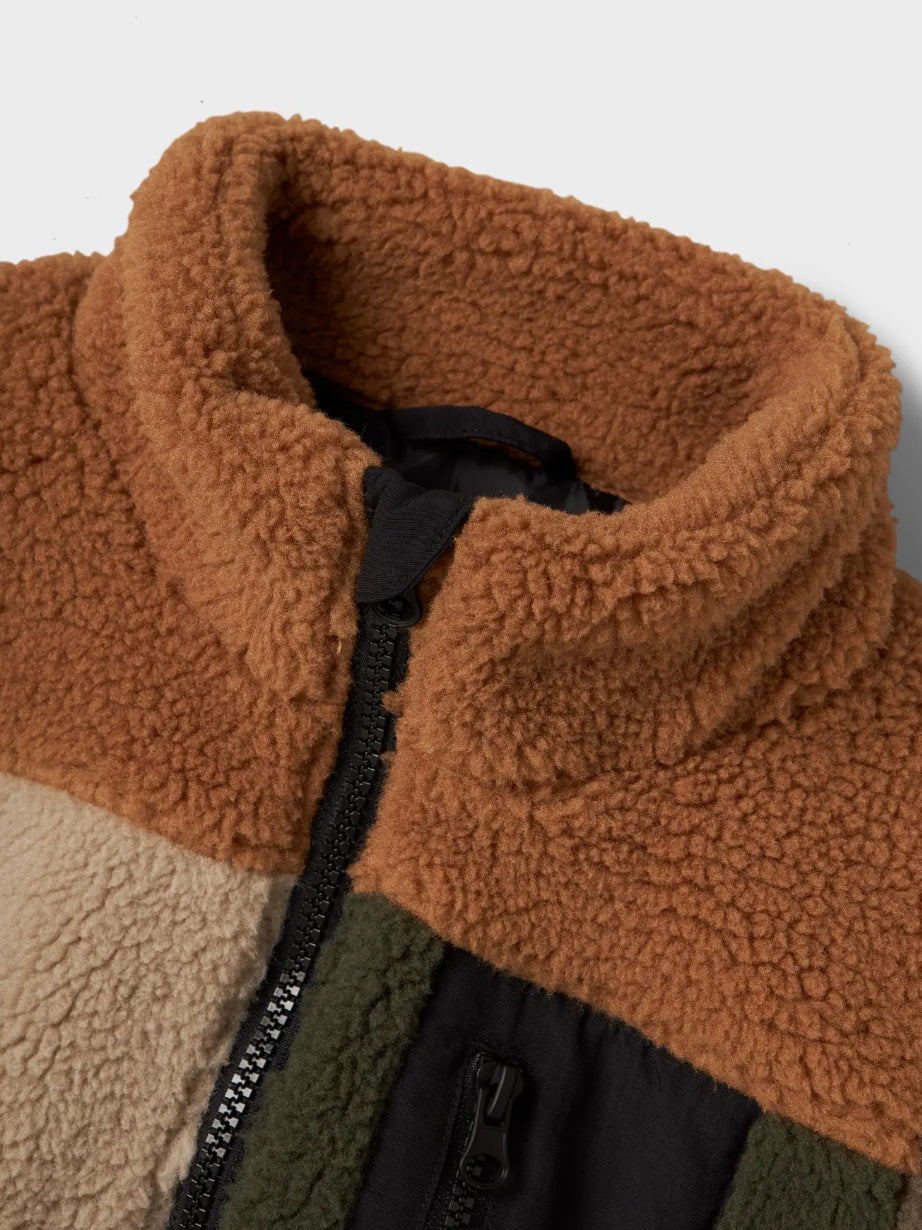 Teddyjacke mit Reißverschluss und Stehkragen.