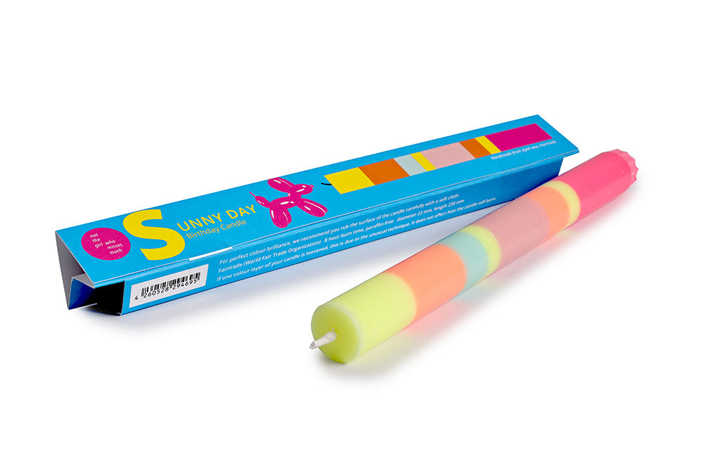 Hergestellt aus rein pflanzlichem, RSPO zertifiziertem Wachs, durchgefärbt mit ökologischen Farbstoffen; aufwendig wird bei ihrer Fertigung Farbschicht für Farbschicht von Hand gegossen.